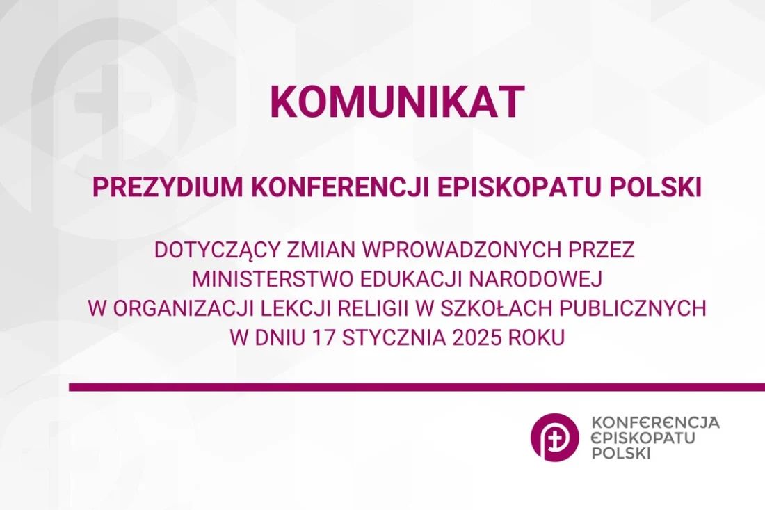 Komunikat Prezydium Konferencji Episkopatu Polskidotyczący zmian wprowadzonych przez Ministerstwo Edukacji Narodowejw organizacji lekcji religii w szkołach publicznych w dniu 17 stycznia 2025 roku